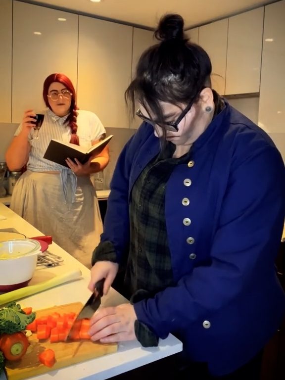This week’s cover art is drawn from a photoshoot Han did with partner Hannah in 2023. Hannah created the prayer beads and heavily modified the corset; Han created the blouse and belt. Photo editing in consultation with Claire.