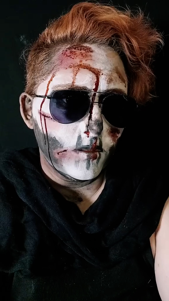 I also cosplay Gideon, but my Gideon relies very little on custom goods, as I tend to put her in black tank tops. But sometimes it’s fun to play with questions like, what happens to grease paint when you get, like, a lot of blood in it?
