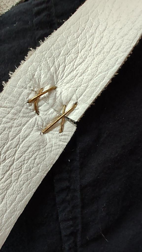 The Harrow rib cage I had put together out of whatever random scraps Claire had lying around had started to show some wear so I wanted to try making a new one out of leather. I had done some boiled leather in the past and thought it would be a good balance of flexibility and sculptability. Unfortunately the leather I got was mislabeled and the way it was tanned was incompatible with this technique, so I spent a ton of time soaking it and baking every piece for no reason.